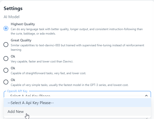 To configure your OpenAI API key within your AI Chat Bot, simply follow these steps: