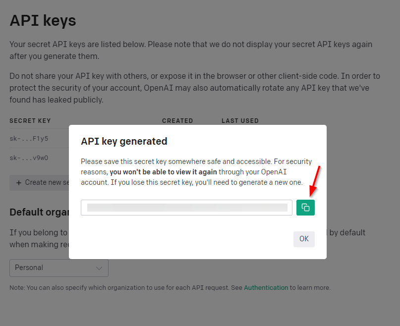 Obtain your OpenAI API key: Log in to your OpenAI account, navigate to the API settings section, and locate your API key. Copy this key for future use.