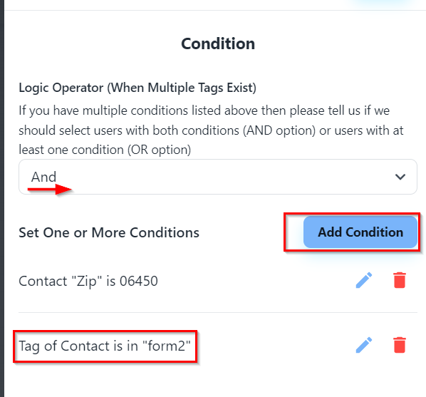 You can also add multiple conditions by just clicking on Add Condition button: