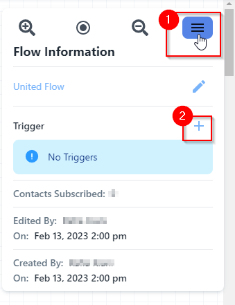 2. On the right side of the screen, you will have the hamburger icon to change the settings of the flow. Please, click on it. You will have the option to remove/add trigger.