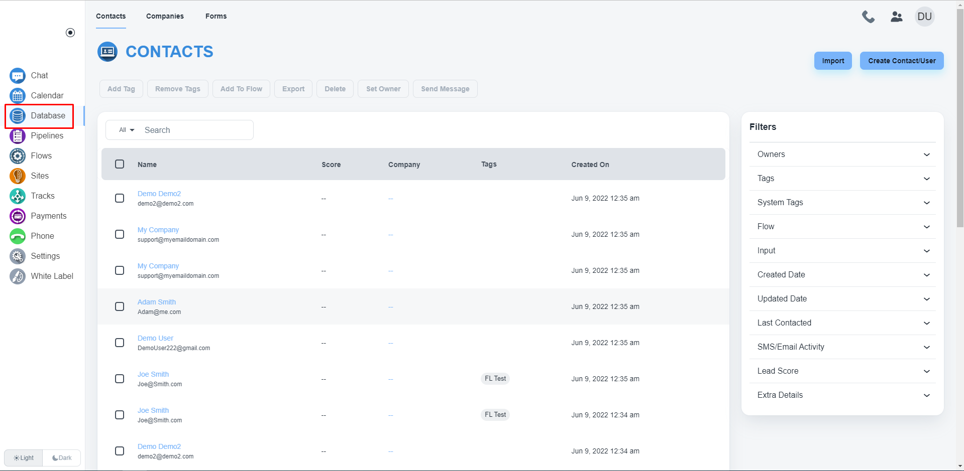 Please, navigate to the ‘Database’ on the left side menu. You will get the list of all contacts