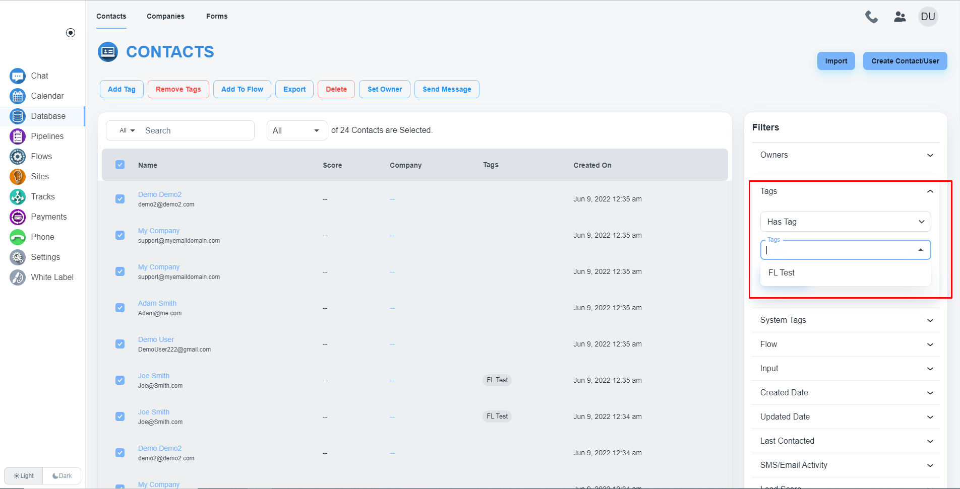 On the right side, you will get the option the feature to filter contacts by tags
