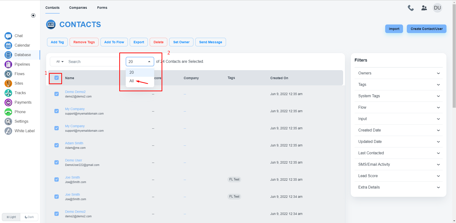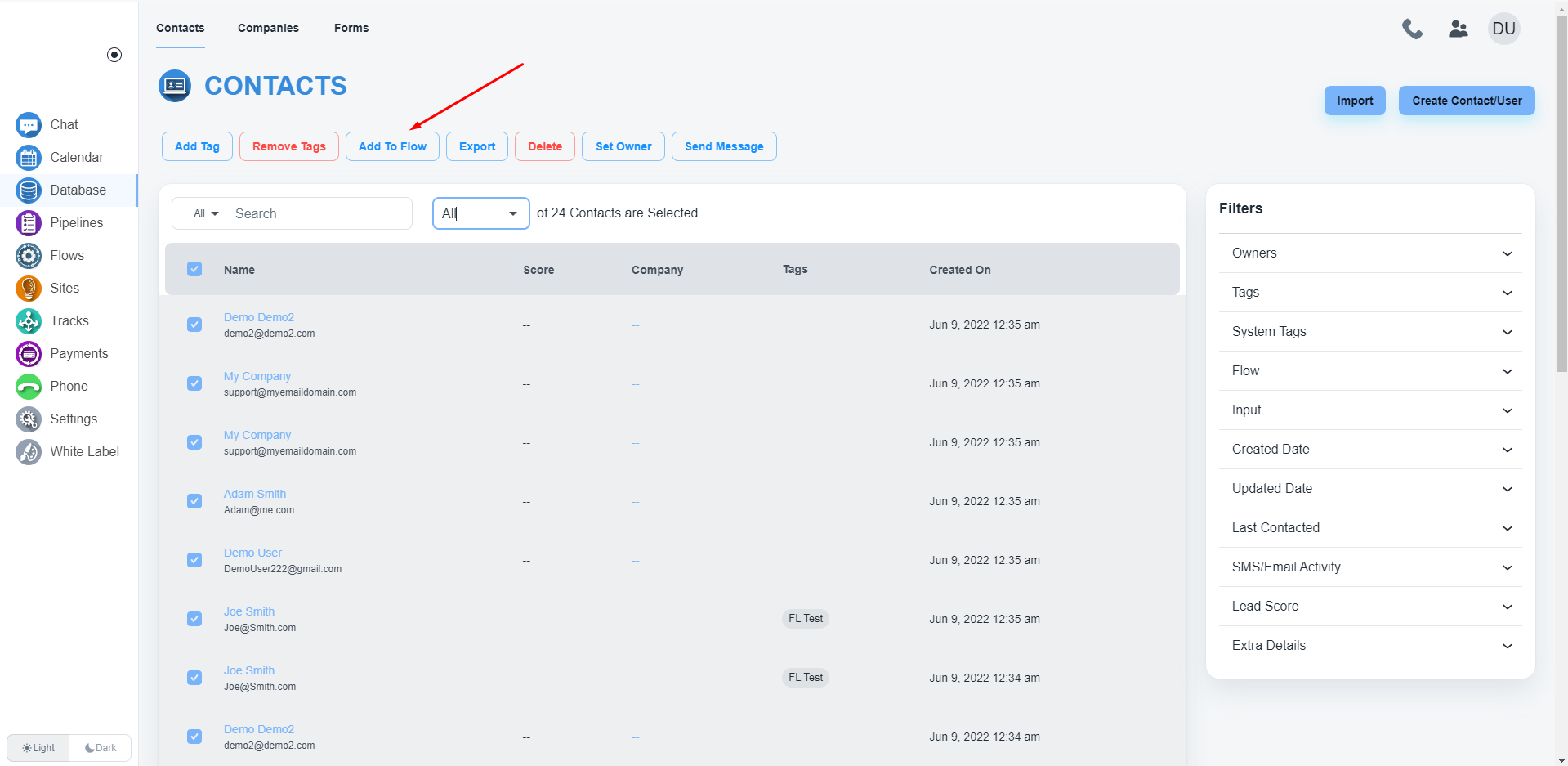 After selecting all contacts, click on the ‘Add To Flow’ button to add all contacts to a flow