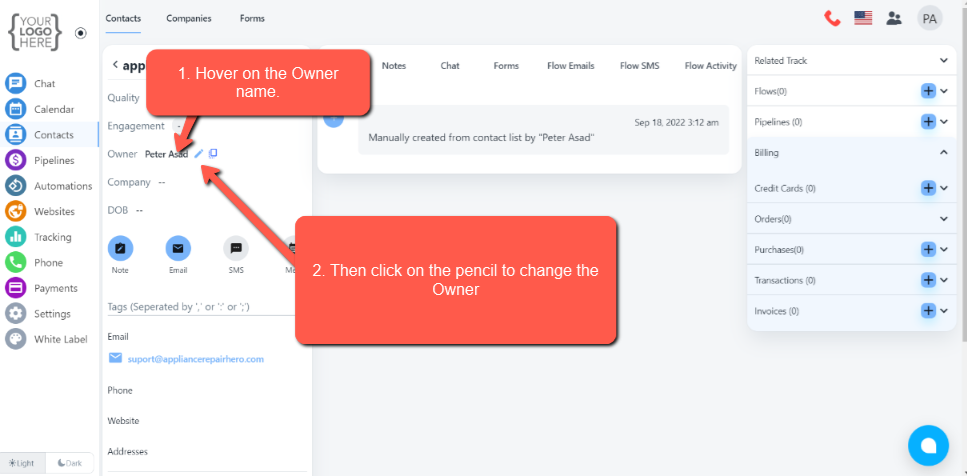 - Then hover on the owner name and it will show you the pencil icon click on that it will show you the dropdown having the Owner. From that you can select the desired one.