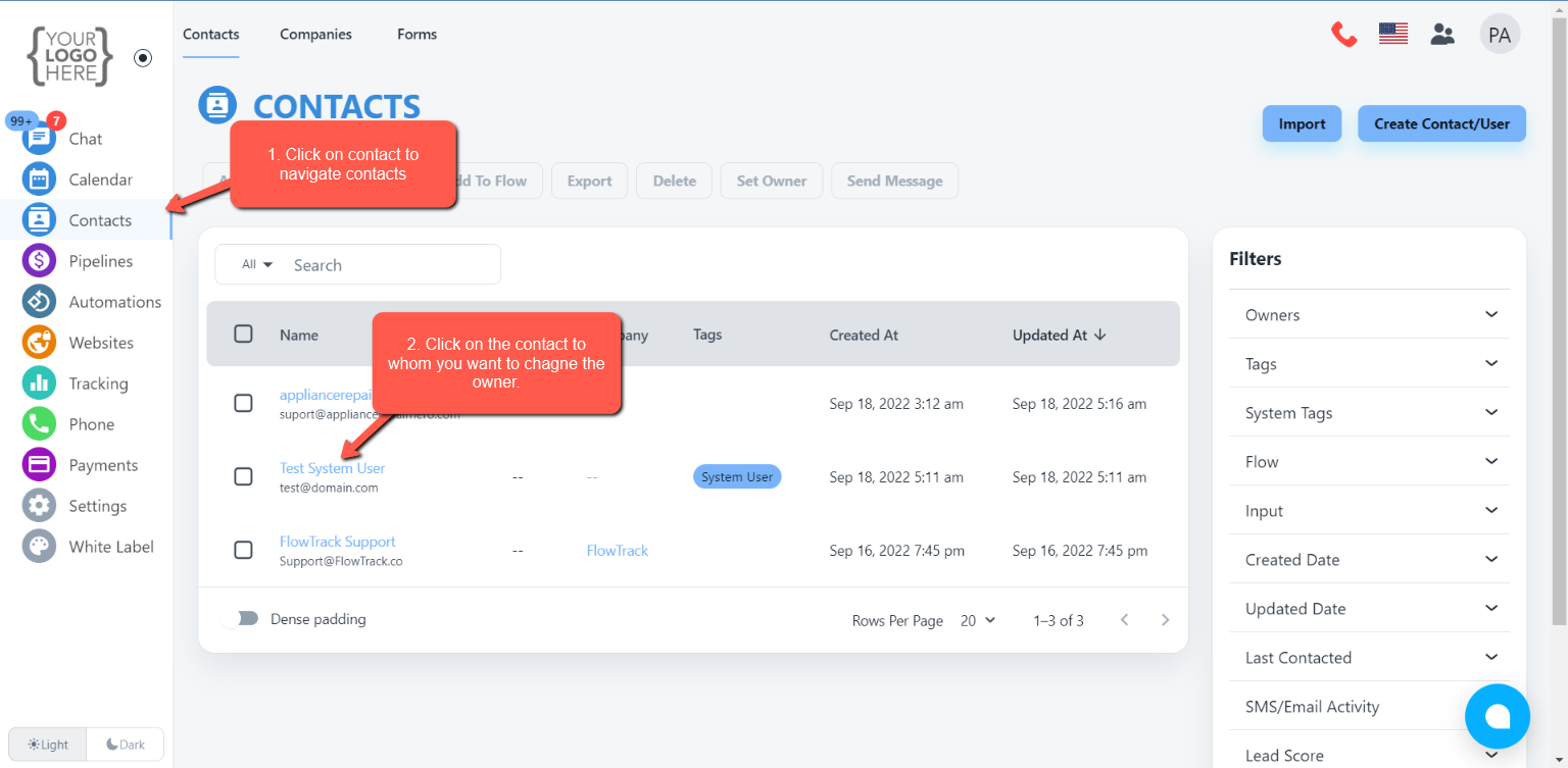 - In Below screenshot you can seen the contact details we will change this contact owner.