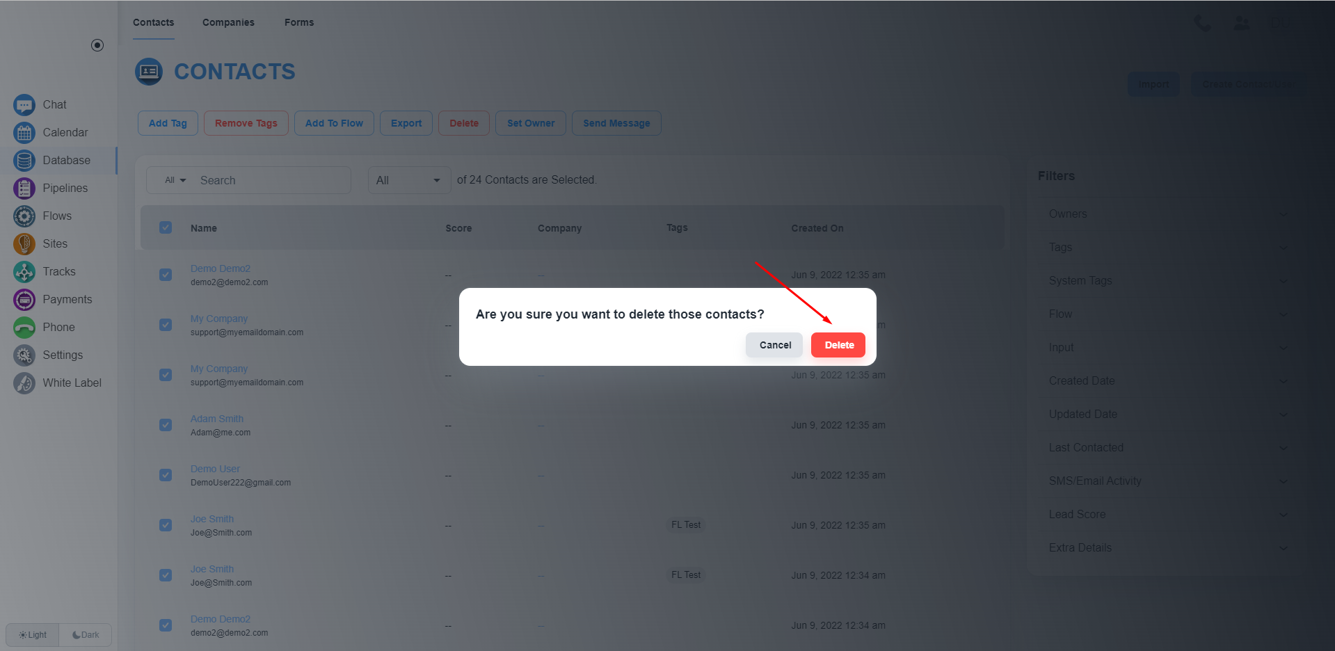 Please, navigate to the ‘Database’ on the left side menu. You will get the list of all contacts