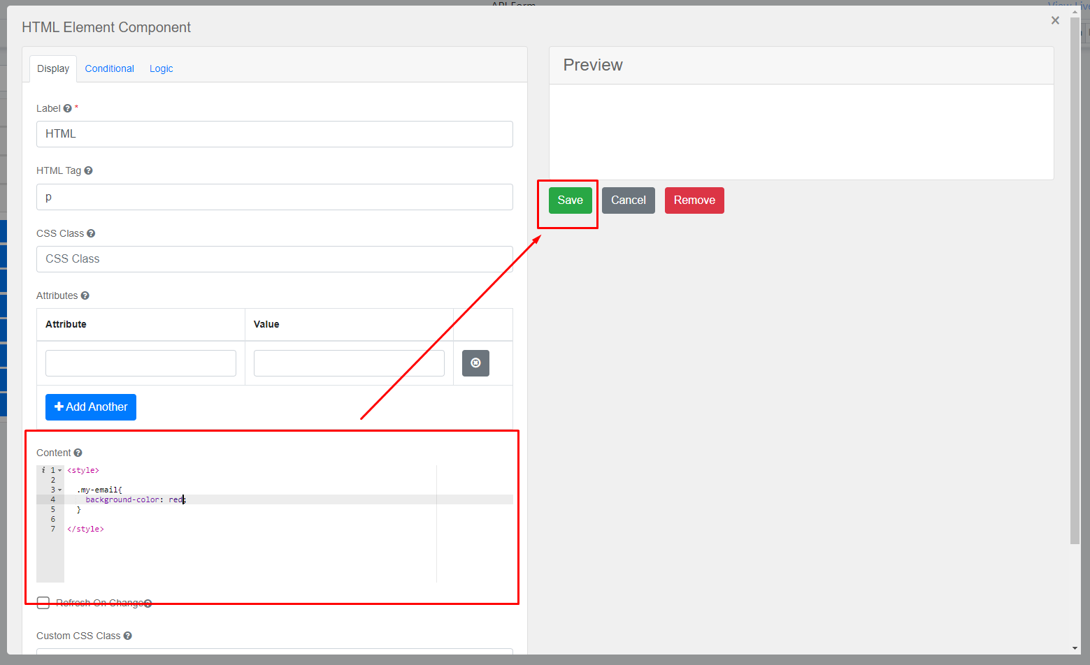 Add ‘HTML Element’ to the form builder.
