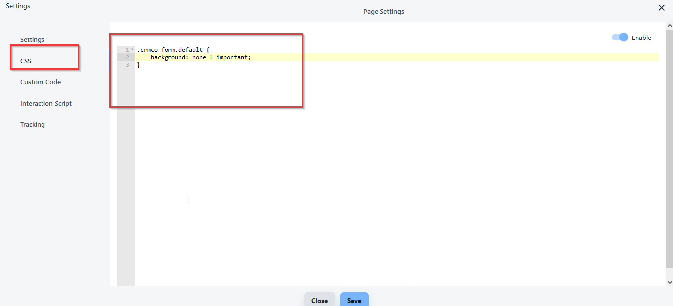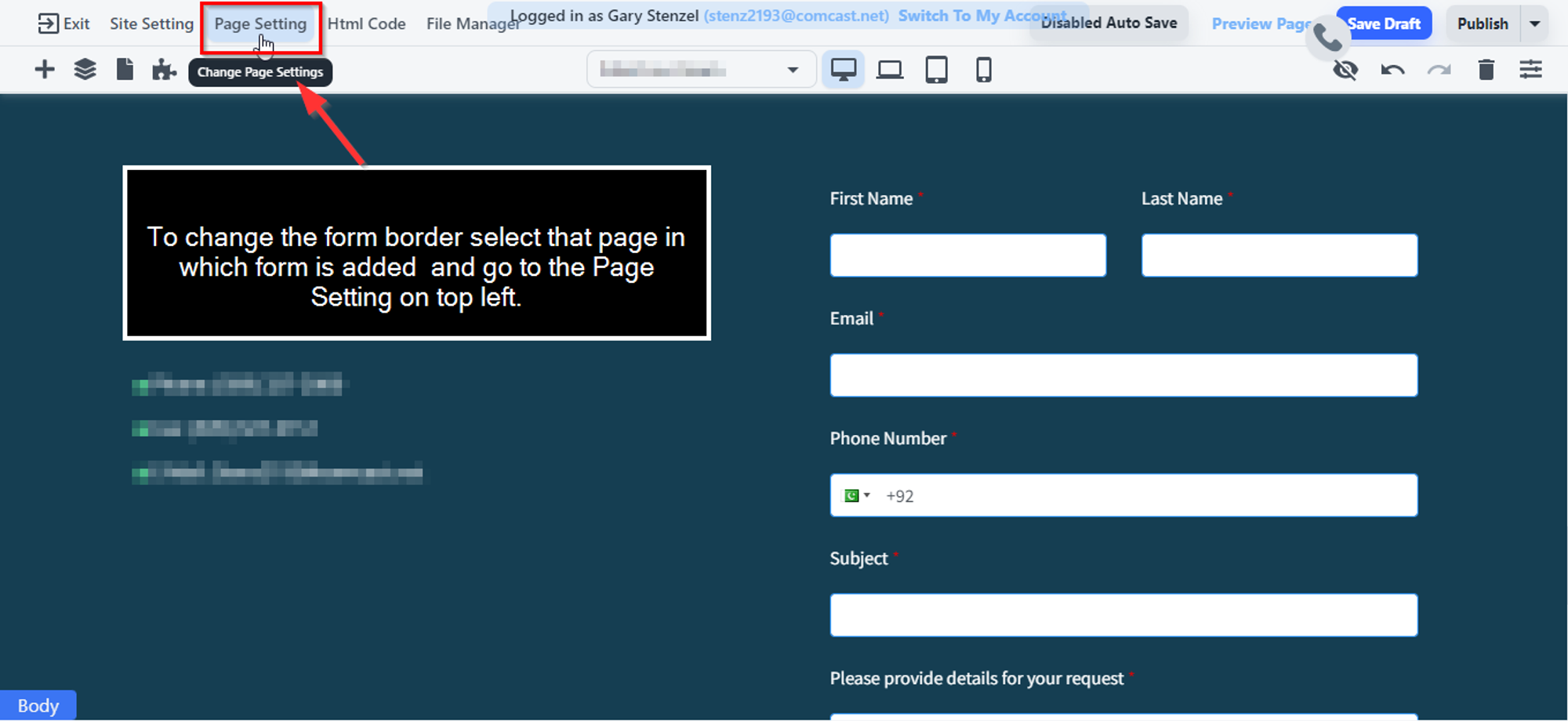 2. To change the form border select that page in which form is added and go to the Page Setting on top left.
