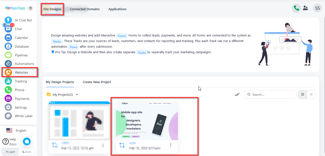 - First, you need to click on Website from the left bar menu then click on Website. Now select website in which you want to add link.