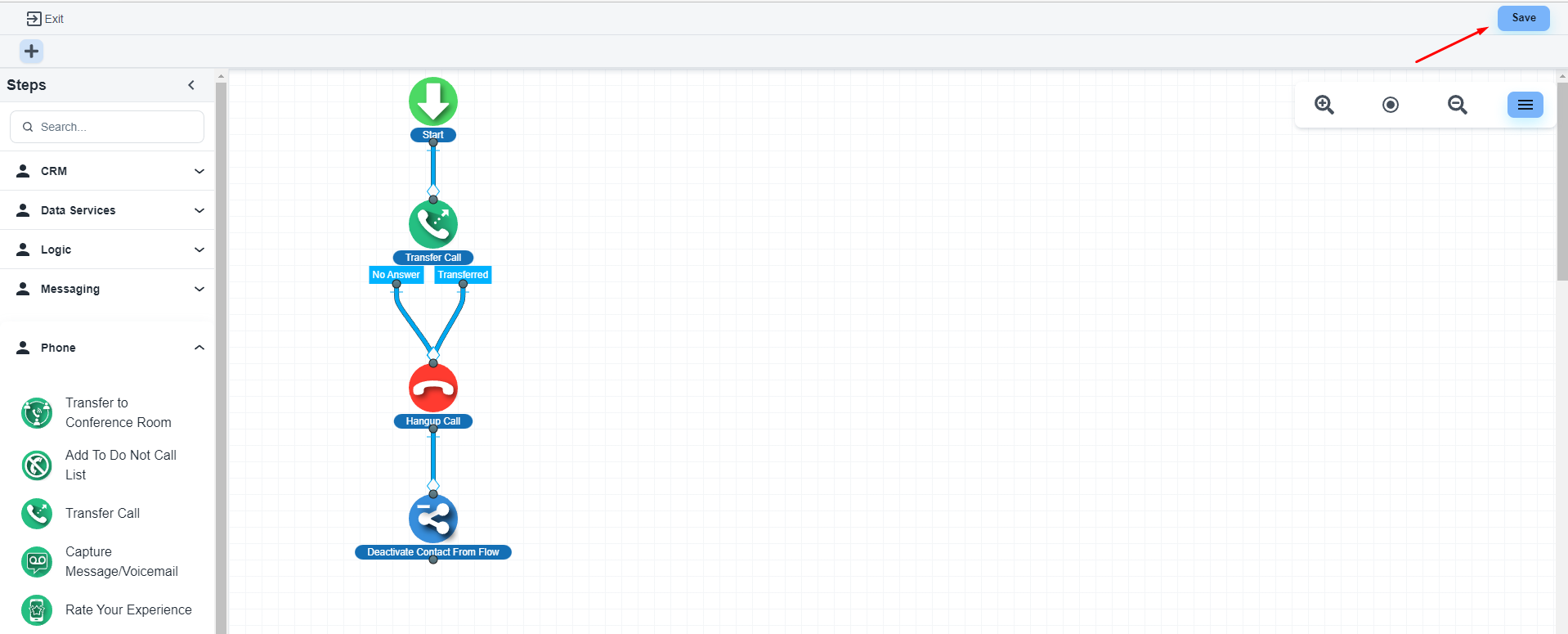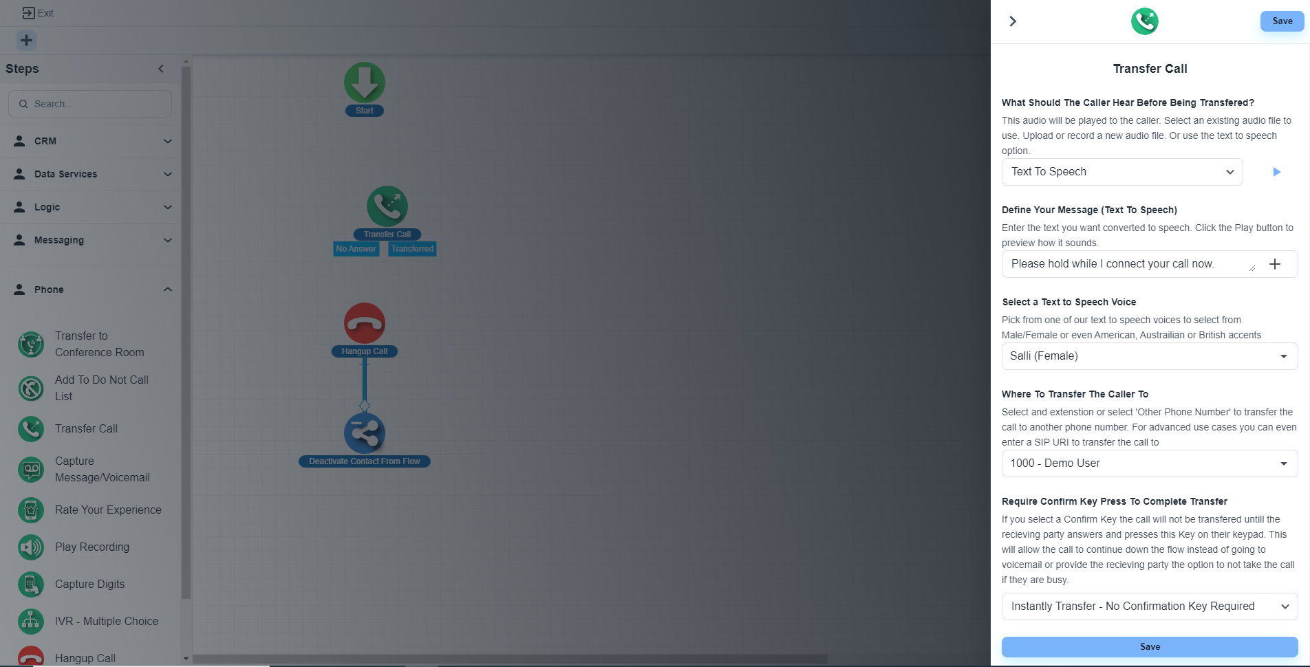 Please, add the ‘Transfer Call’ step under the ‘Phone’ section.