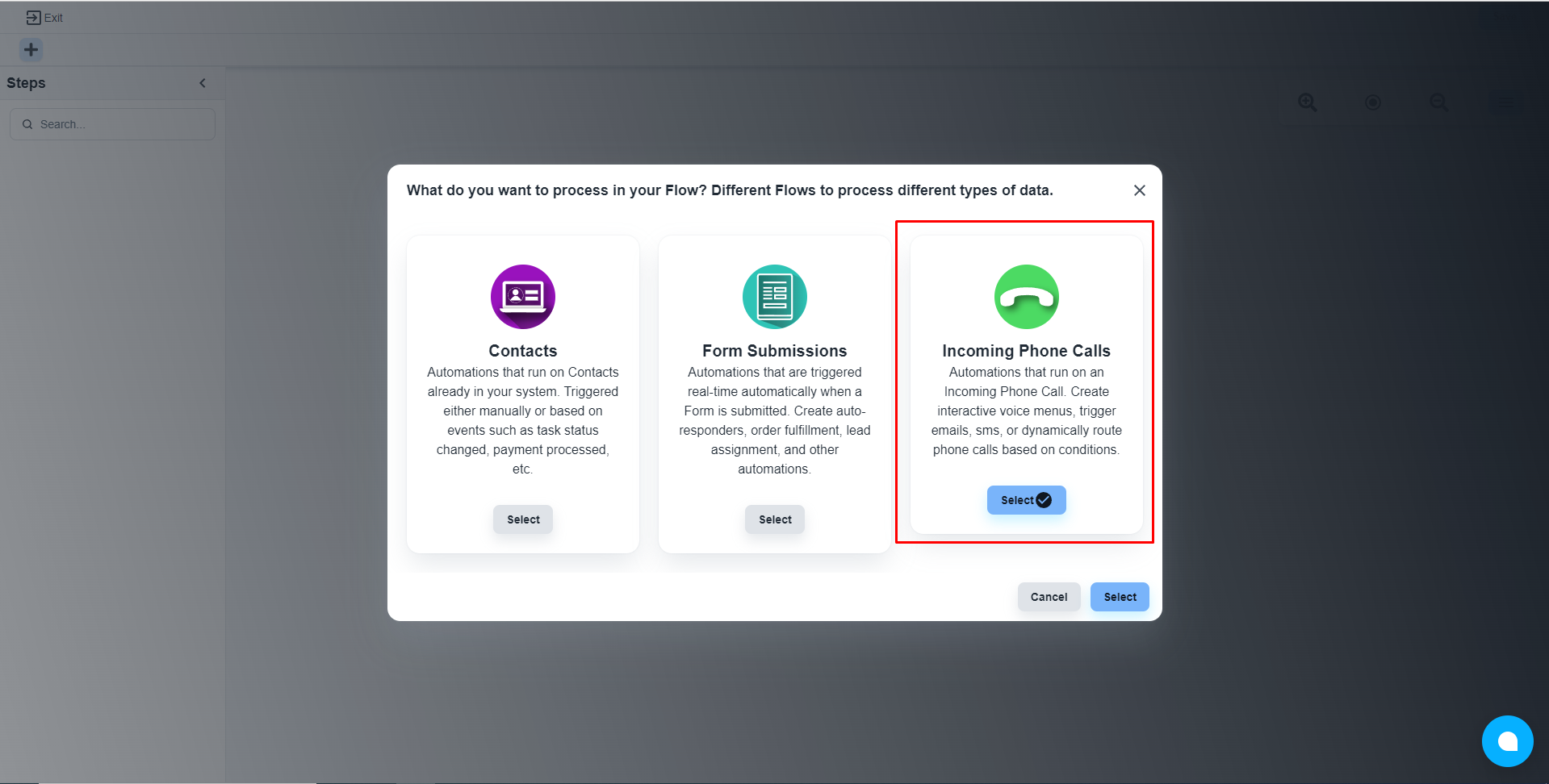 The system will pop up a message box, and you will have to select the third option, 'Incoming Phone Calls'. Now, click on the ‘Select’ button.
