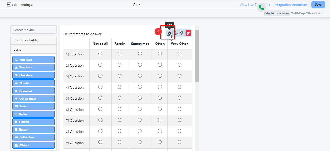 2. Click on the setting of the survey field.