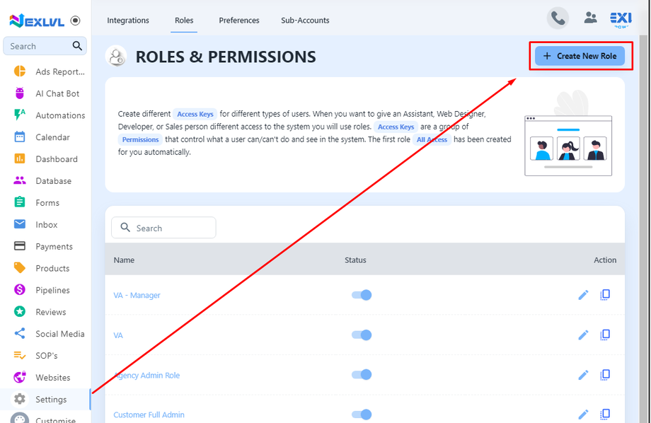 STEP 1: Click on "+ CREATE NEW ROLE" button.