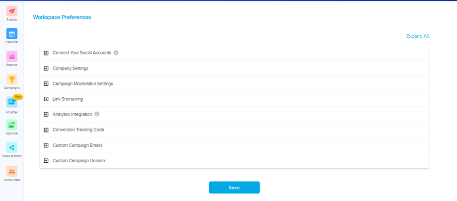 WORKSPACE PREFERENCES: Workspace Preferences offer dedicated sections for: