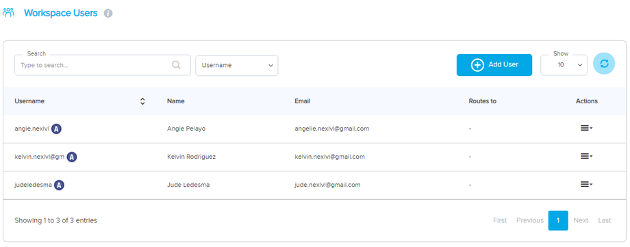 WORKSPACE USERS : This is where you can see all your fellow users