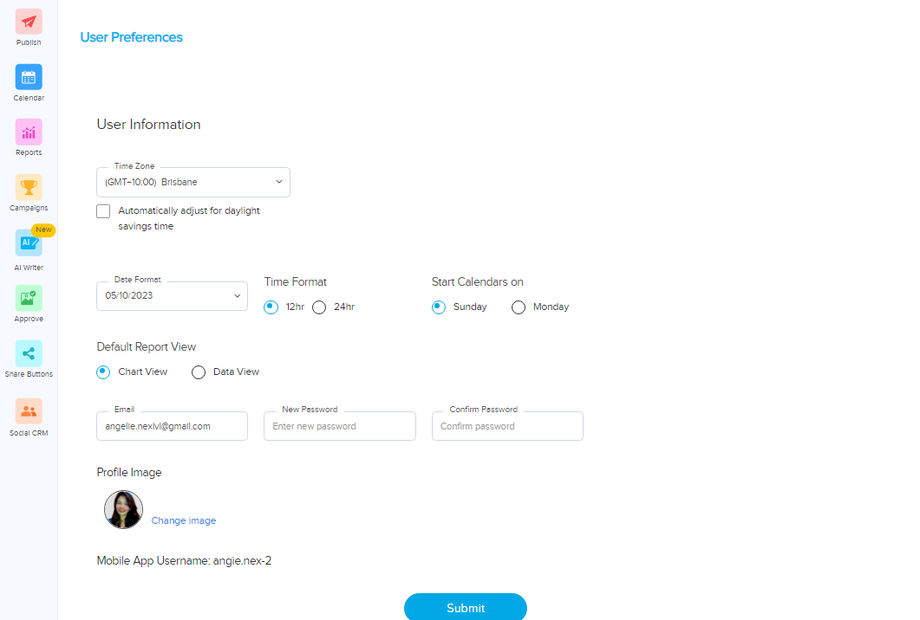 USER PREFERENCES: Involves your information as a user, this is where you also set some settings such as Time Zone, Date Format, and Default Report View. You can also do some modifications in this section such as changing or updating a new password and changing your profile image.