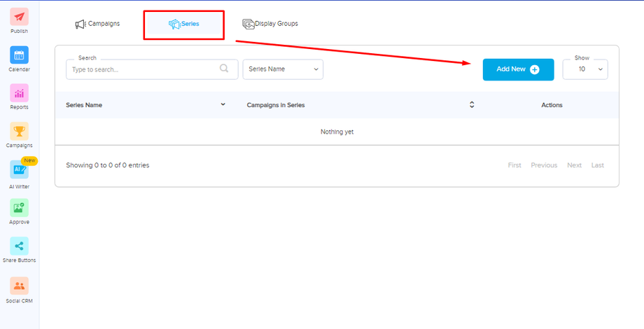 - On the Campaigns page, click on the Series button.