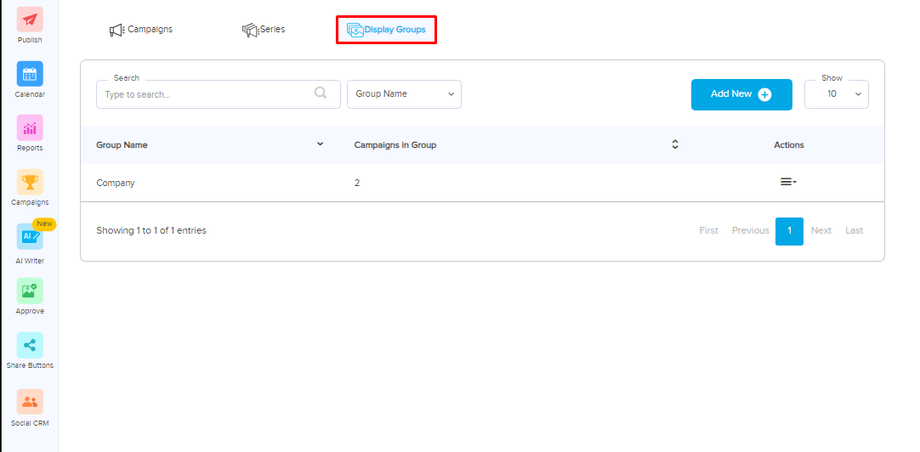 - On the Campaigns page, click on the Display Groups button.
