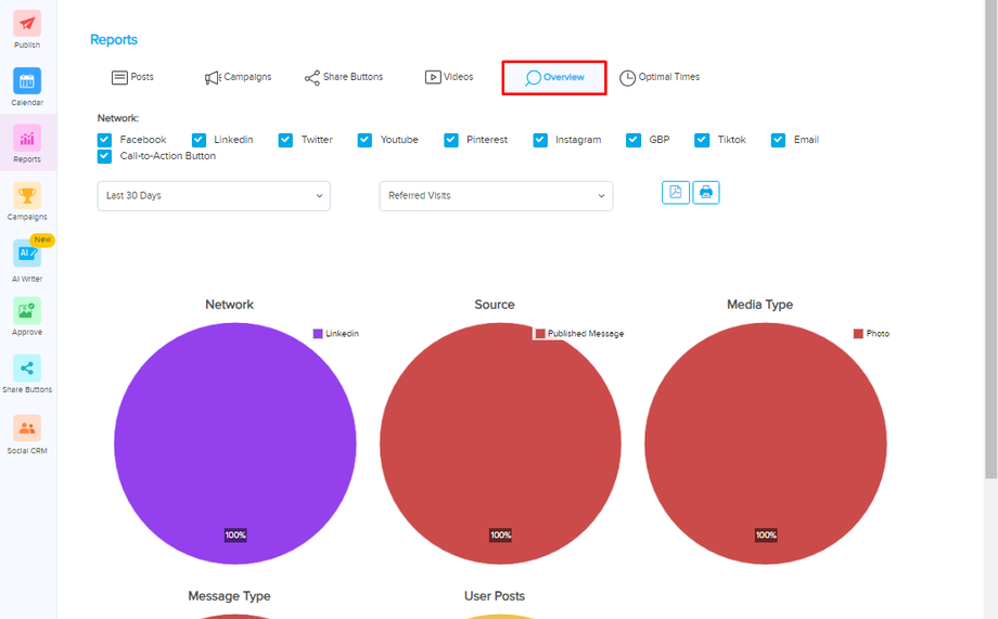 POSTS: Post reports are documents or summaries created to provide information, analysis, or feedback about a particular social media post, article, or content piece. These reports are commonly used in digital marketing, content management, and online reputation management to assess the performance and impact of online content. Post reports in NexLvL typically includes Networks like Facebook, Linkedin, Twitter, Instagram, Youtube, GBP, Pinterest and Tiktok.